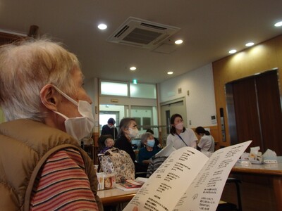 演奏に合わせて用意して下さった歌詞カードで、利用者様が一緒に歌う楽しい時間もありました。